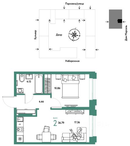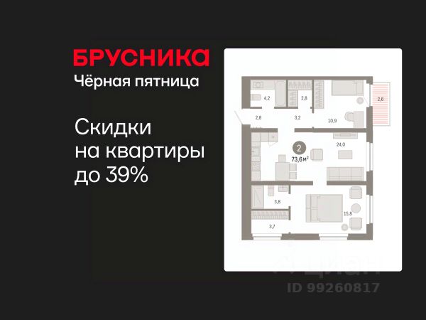 Квартира в счёт первоначального взноса по программе обмена. Информация по телефону, мы вам все подробно расскажем! Двухкомнатная квартира от застройщика с предчистовой отделкой в ЖК "Зарека" на 13 этаже. Общая площадь: 73.55 кв.м., жилая: 26.7 кв.м., площадь просторной кухни-гостиной: 24 кв.м. Угловая квартира, идеально подойдет любителям тишины и панорамных видов. В квартире один балкон, два совмещенных санузла. Высота потолков 2.7 м. Дом монолитный, многоподъездный, переменной этажности, от 6 до 16 этажей. Квартира находится в 1-й секции высотой 16 этажей в корпусе 5-2. На этаже 8 квартир. В подъезде 1 пассажирский и 1 грузовой лифт. Окончание строительства - 4 квартал 2026 года. Оформление сделки по договору долевого участия. Квартира с кухней-гостиной и двумя спальнями в жилом районе "Зарека". Особенности планировки: гардеробная, разнесённые спальни, предчистовая отделка, мастер-спальня, балкон. квартиры в нашей базе: ЗРК05.2-Ж1.13.2. Проект На планировочную структуру "Зареки" повлияла близость к автомобильному мосту Челюскинцев. Мы расположили жилые здания так, чтобы они постепенно удалялись от проезжей части. Приём напоминает лесенку: чем сильнее мост возвышается над участком застройки, тем дальше по отношению к нему стоят дома. Этот ступенчатый сдвиг позволил нам сформировать буфер между кварталами и оживлённой магистралью. Мы намерены высадить здесь высокие деревья и создать дополнительную защиту от дорожных шума и пыли. В границах нашего участка мы намерены разместить школу и два встроенных детских сада на 135 и 150 мест. Общественные пространства С севера на юг территорию будет пронизывать пешеходный бульвар. Мы мыслим это общественное пространство как главный центр притяжения. На нём будут сосредоточены основные детские игровые и спортивные зоны, места для встреч и спокойного отдыха. Он также сыграет роль мостика, ведущего к другим нашим проектам — "Европейскому кварталу" и "Дому у озера". Одна из базовых идей мастер-плана касается береговой линии. Сегодня озеленение этой территории носит стихииныи характер, а прямому доступу к Туре препятствует дамба. Мы хотим благоустроить пространства у воды и открыть их для людей. Архитекторы спроектировали систему многоярусных троп и спусков к реке, смотровые площадки и места для активного отдыха и пикников. #2Sscm9