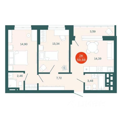 • ✓ В базе Циан 16 2-комнатных квартир на 14 этаже в микрорайоне Гольф-палас в городе Тюмень