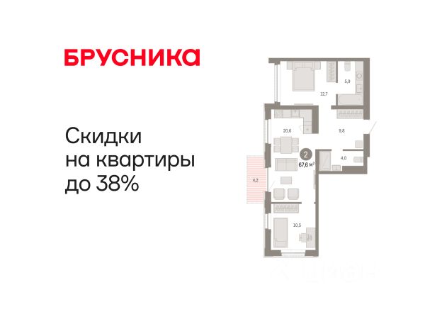 Продаётся квартира площадью 47.00 м2 в жилом комплексе "Айрис". Квартира находится на 14 этаже, жилая площадь квартиры 17.90 м2, площадь просторной кухни — 17.10 м2. Среди особенностей планировки — изолированные комнаты с окнами на одну сторону, 1 совмещённый санузел. Срок сдачи — III кв. 2027 Жилой комплекс "Айрис" — это: - фиджитал-квартал в Тюмени - дома высотой от 7 до 25 этажей - квартиры с системой "Умный дом" - цифровые технологии как элемент благоустройства Окружение В нескольких минутах ходьбы от дома — парк "Комарово" с волейбольной площадкой, открытым кинотеатром, зонами для барбекю и катком. Неподалеку от Airis находится центр иппотерапии, где можно покататься на лошадях и взять уроки верховой езды. На территории Airis появится собственный парк с прогулочными аллеями. Инфраструктура В 5-10 минутах от квартала открыты 2 детских сада и гимназия. На шопинг можно отправиться в торговые комплексы "Колумб" и "Кристалл" — они находятся недалеко от дома. Благоустройство Уютный двор — приватное пространство для жителей. В беседках можно будет почитать книгу в тишине, а в тени деревьев устроиться на пикник. На крыше многоуровневого паркинга будет лаунж-зона с кинотеатром, баскетбольная площадка и воркаут-пространство, где можно позаниматься с виртуальным тренером — достаточно отсканировать код. Лобби Интерьеры лобби выполнены в пастельных тонах с элементами фиджитал-решений. Для отдыха и ожидания гостей создана лаунж-зона. Также есть гостевые санузлы. Колясочные Возвращайтесь налегке после прогулки с малышом — оставить коляску можно в специальном помещении на первом этаже. Кладовые Для сезонных и габаритных вещей предусмотрены отдельные кладовые на цокольном этаже. В каждом помещении уже проведено электричество и выполнена стяжка пола. Паркинг На территории — два многоуровневых наземных паркинга. Один из них примыкает к домам — из него можно напрямую пройти в парадные. Планировки Планировки квартала — от компактной студии до сити-хауса с собственным палисадником — соответствуют любым жизненным сценариям. Можно выбрать квартиры с террасами и готовыми дизайнерскими интерьерами.