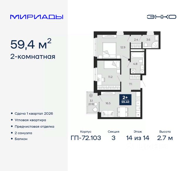 В продаже полноценная двухкомнатая квартира в самом комфортном районе г. Тюмени, Мыс, рядом с Сити Моллом.