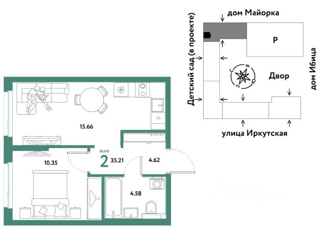 Развитое жилое пространство — закрытые дворы-сады, свои набережная и бульвар, торговая галерея на 1-м этаже, рядом детсады, школы и поликлиника.