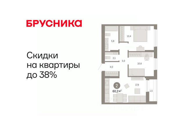 Квартира в рассрочку без процентов от застройщика. Эксклюзивные ипотечные условия. Дом будет сдан в 4 квартале 2025 года. По всем вопросам звоните в офис продаж, мы вам все подробно расскажем! Просторная 2-комн. квартира с предчистовой отделкой в ЖК "Республики 205" на 15 этаже. Общая площадь: 60.21 кв.м., жилая: 24 кв.м., площадь просторной кухни-гостиной: 17.9 кв.м. Комнаты изолированные, все окна выходят на одну сторону. В квартире одна лоджия, один совмещенный и один раздельный санузел. Высота потолков 2.6 м. Купить квартиру можно с помощью программ покупки от застройщика Брусника: - ипотека по эксклюзивной ставке с помощью в получении положительного кредитного решения через сервис ипотечный брокер; - квартиры в рассрочку без процентов от застройщика Брусника; - обмен квартиры на новую. Получить одобрение ипотеки или рассрочку, а также осуществить обмен квартир можно онлайн. Дом монолитный, многоподъездный, переменной этажности, от 9 до 17 этажей. Квартира находится в 6-й секции высотой 15 этажей в корпусе 1. На этаже 7 квартир. В подъезде 1 пассажирский и 1 грузовой лифт. Начало строительства - 2 квартал 2023 года. Окончание строительства - 4 квартал 2025 года. Оформление сделки по договору долевого участия. Район Проект расположен в границах улиц Пермякова, Энергетиков, Воровского и Республики. До центра города — 10 минут на машине. Рядом — автомобильная развязка на пересечении улиц Пермякова и Республики. В шаговой доступности есть школы, детские сады, поликлиники, крупный торговый центр, автовокзал и несколько скверов. Проект "Республики 205" — это проект комплексного развития территории, уникальный по своему наполнению. Переосмысляя бывшую территорию завода медицинского оборудования, мы создадим новое место силы — микрорайон, насыщенный деловой, развлекательной, рекреационной, игровой, образовательной и медицинской инфраструктурой. До каждого полезного сервиса здесь можно будет дойти за 15 минут. Локальными центрами "Республики 205" будут общественные пространства — скверы, парки, бульвары и площади. В границах нашего участка мы намерены разместить школу, рассчитанную на 1550 учеников, два детских сада на 300 мест и встроенный детский сад на 100 мест. В одном из цехов бывшего завода расположится креативный кластер "Кузница". Он станет площадкой для нескольких институций — галереи, лектория, книжного магазина-библиотеки, кинобара и точек креативного pop-up-ритейла. Пешеходные бульвары внутри района соединят между собой улицу ресторанов, детские и спортивные площадки, событийную площадь и летний кинотеатр. Идентификатор квартиры по базе застройщика: МЕД01-01-6-6. #Z4IC8u