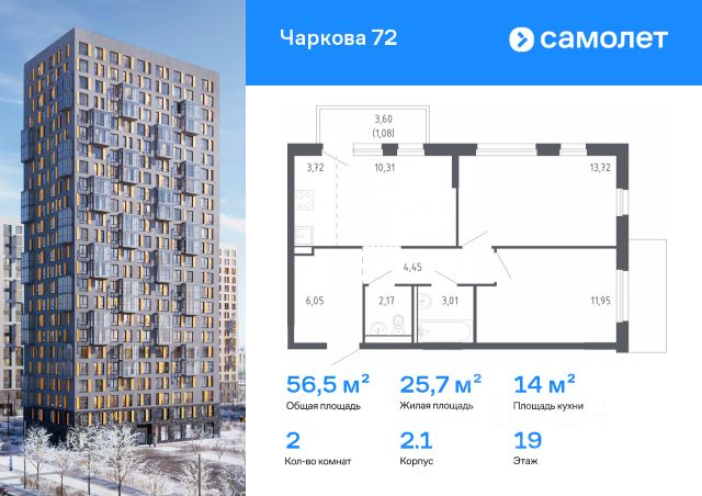 Строим кварталы для жизни с заботой о будущем. Предлагается 2-комнатная квартира комфорт-класса 56,46 кв.м в корпусе 2.1 на 19 этаже, в ЖК "Чаркова 72" Квартира с чистовой отделкой. Доступность дополнительных опций уточняйте у застройщика. Приобрести квартиру возможно по специальным акциям от застройщика, с текущими условиями акций можно ознакомиться в блоке "Акций". Цена динамическая и может отличаться, уточняйте актуальность у застройщика. Идеальное сочетание городского комфорта и размеренной жизни — квартал "Чаркова 72" на северо-востоке города. В дизайне 17-24-этажных домов с панорамными балконами нашли отражение нотки сибирской природы. От "Чаркова 72" удобно добираться до центра города — всего 17 минут пути. А в 2 минутах от дома находится Тобольский тракт. Для семейного отдыха отлично подойдет парк Гагарина — он находится в 7 минутах от квартала. В закрытых дворах тихо и уютно — все авто остались на одном из 4 многоуровневых паркингов, которые находятся за территорией квартала. Можно спокойно гулять по бульвару и заниматься йогой на спортивной площадке. На первых этажах домов — кафе и магазины. Рядом с проектом — детские сады и школы, городская поликлиника и МФЦ. Во всех квартирах есть выводы под кондиционеры, на подземных этажах — индивидуальные кладовые, на первых — места для хранения велосипедов и колясок. В квартирах можно выбрать варианты отделки: чистовая, черновая и улучшенная из материалов повышенного класса.