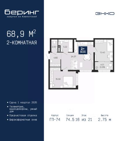 Квартира в рассрочку без процентов от застройщика. Эксклюзивные ипотечные условия. Дом будет сдан в 4 квартале 2025 года. Звоните, наши менеджеры вам все расскажут. Просторная 2-комн. квартира с предчистовой отделкой в ЖК "Республики 205" на 16 этаже. Общая площадь: 60.68 кв.м., жилая: 21.4 кв.м., площадь просторной кухни-гостиной: 18.3 кв.м. Квартира угловая, очень светлая, естественная вентиляция при открытии окон. В квартире одна лоджия, один совмещенный и один раздельный санузел. Высота потолков 2.6 м. Купить квартиру можно с помощью программ покупки от застройщика Брусника: - ипотека по эксклюзивной ставке с помощью в получении положительного кредитного решения через сервис ипотечный брокер; - квартиры в рассрочку без процентов от застройщика Брусника; - обмен квартиры на новую. Получить одобрение ипотеки или рассрочку, а также осуществить обмен квартир можно онлайн. Дом монолитный, многоподъездный, переменной этажности, от 9 до 17 этажей. Квартира находится в 1-й секции высотой 17 этажей в корпусе 1. На этаже 7 квартир. В подъезде 1 пассажирский и 1 грузовой лифт. Начало строительства - 2 квартал 2023 года. В настоящее время строительство завершено, дом сдан в 4 квартале 2025 года. Оформление сделки по договору купли-продажи. Район Проект расположен в границах улиц Пермякова, Энергетиков, Воровского и Республики. До центра города — 10 минут на машине. Рядом — автомобильная развязка на пересечении улиц Пермякова и Республики. В шаговой доступности есть школы, детские сады, поликлиники, крупный торговый центр, автовокзал и несколько скверов. Проект "Республики 205" — это проект комплексного развития территории, уникальный по своему наполнению. Переосмысляя бывшую территорию завода медицинского оборудования, мы создадим новое место силы — микрорайон, насыщенный деловой, развлекательной, рекреационной, игровой, образовательной и медицинской инфраструктурой. До каждого полезного сервиса здесь можно будет дойти за 15 минут. Локальными центрами "Республики 205" будут общественные пространства — скверы, парки, бульвары и площади. В границах нашего участка мы намерены разместить школу, рассчитанную на 1550 учеников, два детских сада на 300 мест и встроенный детский сад на 100 мест. В одном из цехов бывшего завода расположится креативный кластер "Кузница". Он станет площадкой для нескольких институций — галереи, лектория, книжного магазина-библиотеки, кинобара и точек креативного pop-up-ритейла. Пешеходные бульвары внутри района соединят между собой улицу ресторанов, детские и спортивные площадки, событийную площадь и летний кинотеатр. Идентификатор квартиры по базе застройщика: МЕД01-01-1-1. #2wlc8C