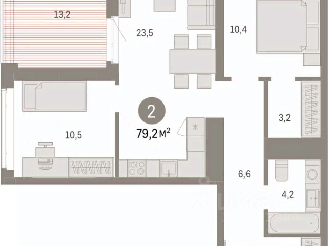 Просторная 2-комн. квартира с предчистовой отделкой в ЖК "Республики 205" на 16 этаже. Общая площадь: 80.12 кв.м. Высота потолков 2.7 м. Купить квартиру можно с помощью программ покупки от застройщика Брусника: - ипотека по эксклюзивной ставке с помощью в получении положительного кредитного решения через сервис ипотечный брокер; - квартиры в рассрочку без процентов от застройщика Брусника; - обмен квартиры на новую. Получить одобрение ипотеки или рассрочку, а также осуществить обмен квартир можно онлайн. Дом монолитный, многоподъездный, переменной этажности, от 7 до 25 этажей. Квартира находится в 1-й секции высотой 25 этажей в корпусе 3-1. На этаже 8 квартир. В подъезде 2 пассажирских и 1 грузовой лифт. Окончание строительства - 1 квартал 2027 года. Оформление сделки по договору долевого участия. Район Проект расположен в границах улиц Пермякова, Энергетиков, Воровского и Республики. До центра города — 10 минут на машине. Рядом — автомобильная развязка на пересечении улиц Пермякова и Республики. В шаговой доступности есть школы, детские сады, поликлиники, крупный торговый центр, автовокзал и несколько скверов. Проект "Республики 205" — это проект комплексного развития территории, уникальный по своему наполнению. Переосмысляя бывшую территорию завода медицинского оборудования, мы создадим новое место силы — микрорайон, насыщенный деловой, развлекательной, рекреационной, игровой, образовательной и медицинской инфраструктурой. До каждого полезного сервиса здесь можно будет дойти за 15 минут. Локальными центрами "Республики 205" будут общественные пространства — скверы, парки, бульвары и площади. В границах нашего участка мы намерены разместить школу, рассчитанную на 1550 учеников, два детских сада на 300 мест и встроенный детский сад на 100 мест. В одном из цехов бывшего завода расположится креативный кластер "Кузница". Он станет площадкой для нескольких институций — галереи, лектория, книжного магазина-библиотеки, кинобара и точек креативного pop-up-ритейла. Пешеходные бульвары внутри района соединят между собой улицу ресторанов, детские и спортивные площадки, событийную площадь и летний кинотеатр. Идентификатор квартиры по базе застройщика: РСП03.