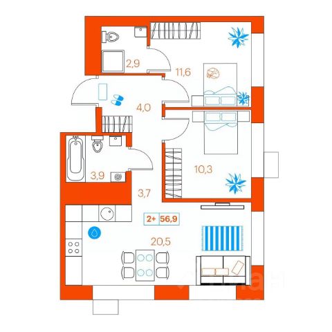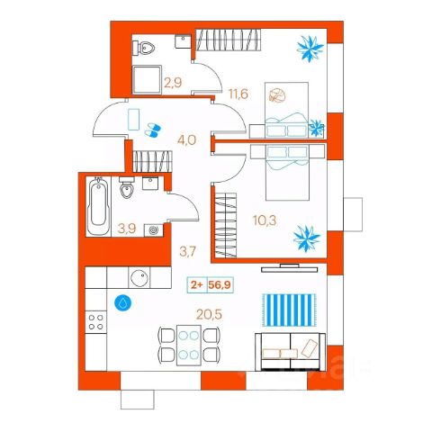 • ✓ В базе Циан 2 2-комнатных квартир на 16 этаже в микрорайоне Тарманы в городе Тюмень