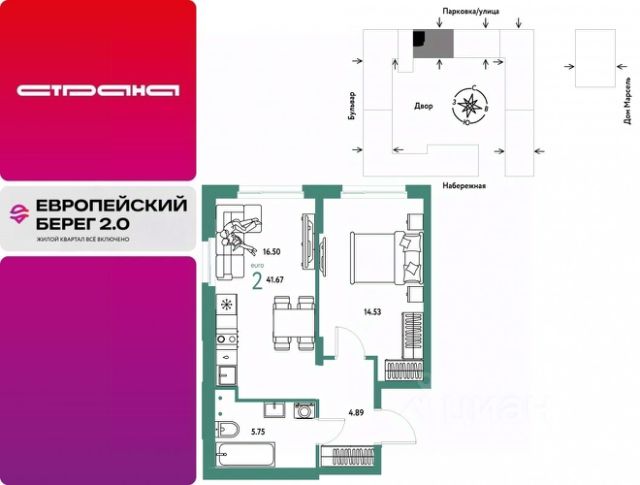 Объявление от застройщика Страна Девелопмент. Покупка квартиры защищена банком. Продается 2комнатная квартира на 16 этаже от застройщика Страна Девелопмент. Площадь квартиры 40,51 кв. м. О ПРOЕКТЕ Европейский берег 2.0. — это продолжение легендарного жилого комплекса Европейский берег. Он включает все, что нужно для жизни, и даже больше. Этот квартал для тех, кто не готов тратить время на ненужное, жертвовать одним ради другого. Для тех, кто хочет получить все и сразу. Именно поэтому генеральная идея проекта — жилой квартал все включено. Все преимущества включены. Никаких исключений. ПРЕИМУЩЕСТВА Разнообразие планировок: от классических до квартир с мастер-спальней и террасами. Подземный паркинг с кладовыми, охраной и видеонаблюдением 24/7. Ремонт от застройщика: 5 вариантов на выбор. Закрытый двор с площадками и зонами отдыха: мост-акведук, тренажёры, лабиринты, гамаки и шезлонги. ОТДЕЛКА Базовая отделка или готовый ремонт от застройщика. В базовой отделке все черновые работы выполнены, подведены коммуникации, стены оштукатурены под маяк. В ремонт от застройщика входит 5 вариантов отделки, уже включено всё необходимое: от сантехники до кондиционера. СПОСОБЫ ПОКУПКИ Сотрудники "Страны Девелопмент" будут сопровождать вас на каждом этапе сделки, помогут получить одобрение по ипотеке или снизить ежемесячный платеж. - ипотека - материнский капитал - 100% оплата наличными - рассрочка - обмен — это выкуп вашей старой квартиры и зачисление полученных денежных средств в счет стоимости новой квартиры или в качестве первоначального взноса по ипотеке.