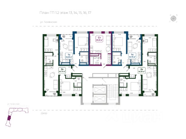 Жилой комплекс находится в одном из экологически благоприятных районов Тюмени, недалеко от Плехановского бора. При этом до центра города можно добраться за 15 минут, а до международного аэропорта Рощино за 13 минут.