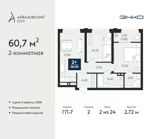 Торопитесь оформить бронирование на этих условиях, срок акции ограничен! Стоимость квартиры указана со скидкой, ваша экономия составит 1,220,000 руб. Информация по телефону, наши менеджеры вам все расскажут. Продается 2-комн. квартира от застройщика с предчистовой отделкой в ЖК "Айвазовский" на 2 этаже. Общая площадь: 90.06 кв.м., жилая: 42.88 кв.м., площадь просторной кухни-столовой: 23.18 кв.м. Угловая квартира, идеально подойдет любителям тишины и панорамных видов. В квартире одна лоджия, два совмещенных санузла. Высота потолков 2.72 м. Дом монолитный, многоподъездный, переменной этажности, от 5 до 21 этажей. Квартира находится в 5-й секции высотой 9 этажей в корпусе ГП-5. На этаже 5 квартир. В подъезде 1 пассажирский и 1 грузовой лифт. В настоящее время строительство окончено, дом сдан в 4 квартале 2023 года. Оформление сделки по договору купли-продажи. Новый жилой район располагается в живописном месте на берегу Туры в центральной части города. Принципиально новое пространство для жизни в центре современного города для тех, чьи мечты сбываются, кто нацелен на постоянный рост, перемены к лучшему для себя и своих близких. Каждая деталь ЖК "Айвазовский" вдохновляет и заряжает на новые свершения: авторская архитектура, сбалансированная продуманная инфраструктура, дизайнерские дворы со спортивными и детскими площадками, парковые зоны с фонтанами, водный канал, украшающий центральный прогулочный маршрут района и многое другое. В 2019 года проект стал лауреатом престижной премии Urban Awards 2019 в номинации "Лучший строящийся региональный жилой комплекс бизнес-класса". Главная особенность Айвазовский - соседство разных архитектурных школ в рамках одного дома. Изысканная классика, выразительная эклектика и оригинальный модерн - жить в одном из таких домов настоящий повод для гордости. Айвазовский это идеальное сочетание комфорта, технологий и развитой инфраструктуры. Вход в подъезд возможен с улицы и со двора. Отправляясь на работу или за покупками, жители могут выйти с внешней стороны дома, а для прогулки с ребенком со стороны двора. Экологически чистые материалы и энергосберегающие технологии, качественное освещение общественных зон, видеонаблюдение по всей территории жилого района (в том числе в подъездах, лифтах и в подземном паркинге), закрытые дворы с доступом только для жителей Айвазовский. Часть домов в Айвазовский будут оснащены подземным паркингом. Востребованный в нашем климатическом поясе формат хранения автомобилей защитит собственность владельца в любое время года. Аккредитация в банках: ПАО Банк "ВТБ", ПАО "Газпромбанк", ОАО "Альфа-Банк", "Сбербанк России", ПАО "Совкомбанк" и других. #IcWaa2
