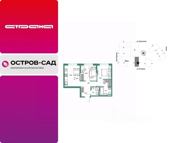 Квартира с кухней-гостиной и двумя спальнями в Октябрьском на Туре. Особенности планировки: балкон, предчистовая отделка, разнесённые спальни. квартиры в нашей базе: ОКТ-10-1-1.2.1. Район Проект расположен на берегу реки, в одном из самых живописных и экологичных районов Тюмени. За последние годы облик района изменился. По соседству с индивидуальной застройкой выросли многоквартирные дома. При проектировании "Октябрьского на Туре" нашей приоритетной задачей стало сохранение природного ландшафта: мы постарались деликатно вписать в него современную архитектуру. Квартал удачно расположен с точки зрения дорожной инфраструктуры. На автомобиле путь до центра города составит 15 минут. Добраться до набережной и главных тюменских достопримечательностей можно и на общественном транспорте. В пешей доступности находится автобусная остановка. Проект По мастер-плану здесь будет восемь домов. Ядро застройки составляют замкнутые кварталы переменной этажности. Их высотность понижается по мере приближения к реке. На углах участка мы разместили башни-доминанты. Одной из достопримечательностей квартала станет парк на Туре — здесь появится зеленая зона протяженностью около 6 километров для пеших и велопрогулок. Смысловая ось квартала — широкая главная улица с высаженными вдоль неё высокими деревьями. Они создают тень и работают как шумо- и пылезащитные экраны. Это место сосредоточения основных пешеходных и транспортных потоков, на сторону которых мы ориентировали большинство коммерческих помещений. Отсюда жители могут свернуть на тихие соседские улицы и попасть на внутриквартальную площадь — ещё одну точку притяжения. #2Uff5D