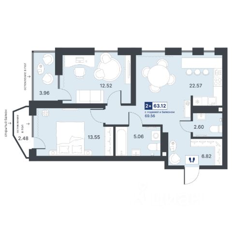 Квартира с кухней-гостиной и двумя спальнями в Октябрьском на Туре. Особенности планировки: предчистовая отделка, разнесённые спальни. квартиры в нашей базе: ОКТ09-Ж1.2.2. Район Проект расположен на берегу реки, в одном из самых живописных и экологичных районов Тюмени. За последние годы облик района изменился. По соседству с индивидуальной застройкой выросли многоквартирные дома. При проектировании "Октябрьского на Туре" нашей приоритетной задачей стало сохранение природного ландшафта: мы постарались деликатно вписать в него современную архитектуру. Квартал удачно расположен с точки зрения дорожной инфраструктуры. На автомобиле путь до центра города составит 15 минут. Добраться до набережной и главных тюменских достопримечательностей можно и на общественном транспорте. В пешей доступности находится автобусная остановка. Проект По мастер-плану здесь будет восемь домов. Ядро застройки составляют замкнутые кварталы переменной этажности. Их высотность понижается по мере приближения к реке. На углах участка мы разместили башни-доминанты. Одной из достопримечательностей квартала станет парк на Туре — здесь появится зеленая зона протяженностью около 6 километров для пеших и велопрогулок. Смысловая ось квартала — широкая главная улица с высаженными вдоль неё высокими деревьями. Они создают тень и работают как шумо- и пылезащитные экраны. Это место сосредоточения основных пешеходных и транспортных потоков, на сторону которых мы ориентировали большинство коммерческих помещений. Отсюда жители могут свернуть на тихие соседские улицы и попасть на внутриквартальную площадь — ещё одну точку притяжения. #Zwd5gA