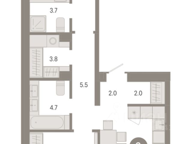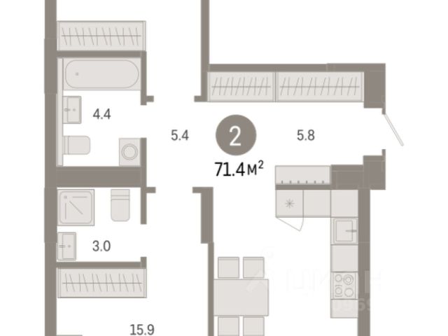 Квартира с кухней-гостиной и двумя спальнями в Октябрьском на Туре. Особенности планировки: балкон, второй санузел, гардеробная, мастер-спальня, предчистовая отделка, разнесённые спальни. квартиры в нашей базе: ОКТ-10-5-5.2.3. Район Проект расположен на берегу реки, в одном из самых живописных и экологичных районов Тюмени. За последние годы облик района изменился. По соседству с индивидуальной застройкой выросли многоквартирные дома. При проектировании "Октябрьского на Туре" нашей приоритетной задачей стало сохранение природного ландшафта: мы постарались деликатно вписать в него современную архитектуру. Квартал удачно расположен с точки зрения дорожной инфраструктуры. На автомобиле путь до центра города составит 15 минут. Добраться до набережной и главных тюменских достопримечательностей можно и на общественном транспорте. В пешей доступности находится автобусная остановка. Проект По мастер-плану здесь будет восемь домов. Ядро застройки составляют замкнутые кварталы переменной этажности. Их высотность понижается по мере приближения к реке. На углах участка мы разместили башни-доминанты. Одной из достопримечательностей квартала станет парк на Туре — здесь появится зеленая зона протяженностью около 6 километров для пеших и велопрогулок. Смысловая ось квартала — широкая главная улица с высаженными вдоль неё высокими деревьями. Они создают тень и работают как шумо- и пылезащитные экраны. Это место сосредоточения основных пешеходных и транспортных потоков, на сторону которых мы ориентировали большинство коммерческих помещений. Отсюда жители могут свернуть на тихие соседские улицы и попасть на внутриквартальную площадь — ещё одну точку притяжения. #ZUFf7A