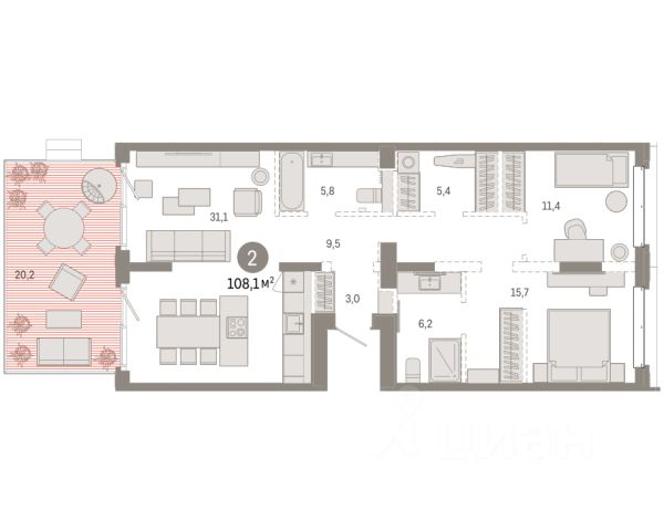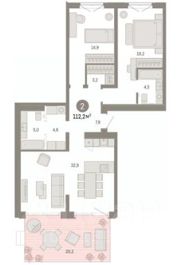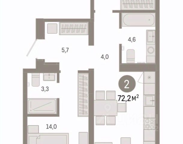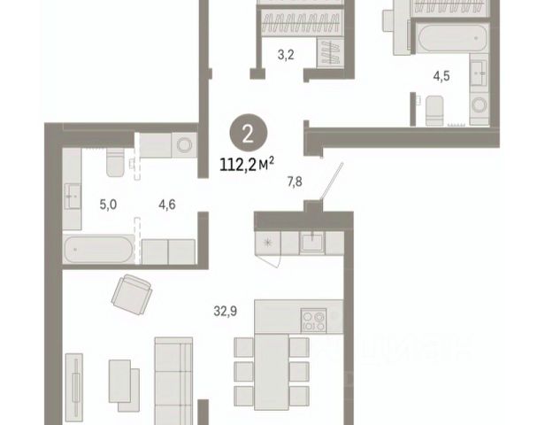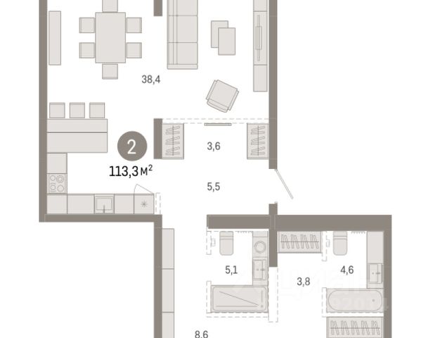 2-комн. квартира от застройщика с предчистовой отделкой в Кварталы "На Минской" на 2 этаже. Общая площадь: 63.77 кв.м., жилая: 25.2 кв.м., площадь просторной кухни-гостиной: 21.6 кв.м. Комнаты изолированные, все окна выходят на одну сторону. В квартире два совмещенных санузла. Высота потолков 2.7 м. Дом монолитный, многоподъездный, переменной этажности, от 7 до 11 этажей. Квартира находится в 1-й секции высотой 7 этажей в корпусе 2. На этаже 6 квартир. В подъезде 1 пассажирский и 1 грузовой лифт. Окончание строительства - 1 квартал 2027 года. Оформление сделки по договору долевого участия. Квартира с кухней-гостиной и двумя спальнями в кварталах "На Минской". Особенности планировки: вид во двор, гардеробная, мастер-спальня, потолки 3 м и выше, предчистовая отделка, разнесённые спальни. квартиры в нашей базе: МНС02-Ж1.2.3. В сердце города Кварталы "На Минской" находятся в самом центре. За десять минут можно дойти до площади 400-летия Тюмени и Большого Драматического театра, Тюменского индустриального и медицинского университетов, спортивного комплекса "Строймаш", ТРЦ "Гудвин" и "Премьер", Тюменского технопарка. Поблизости много детских садов, школ и поликлиник. Пространство разного опыта Создавая кварталы "На Минской" мы вдохновлялись Хакскими дворами в Берлине и улицей Давида Агмашенебели в Тбилиси. И первые и вторая — яркие разнообразные пространства, сформированные прогрессивными архитекторами и притягивающие городских интеллектуалов. Престижная недвижимость здесь соседствует с барами, ресторанами, креативными кластерами и бюро, дизайнерскими лавками. Полезные улицы Кварталы "На Минской" свяжет сеть променадов, автомобильных проездов и велодорожек. Уличный фронт проекта мы сформируем с помощью аллейной посадки деревьев. Они создадут тень для ресторанов и кафе на первых этажах, визуально отделят проезжую и пешеходную части, снизят объём пыли и уровень шума. Мы реализуем проект в районе с развитой базовой инфраструктурой. И поэтому тщательно подошли к программированию коммерции, посчитав, что её основная задача — "закрывать" более высокие потребности жителей. Здесь может появиться пекарня с вкусными круассанами, турагентство на случай, если захочется перезимовать в Сочи, массажный кабинет, ресторан, когда надоело есть дома и многое другое. #ZsZAze