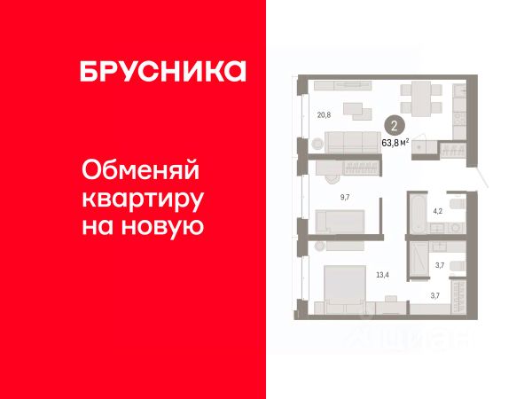 Продается 2-комн. квартира с предчистовой отделкой в Кварталы "На Минской" на 2 этаже. Общая площадь: 63.77 кв.м., жилая: 25.2 кв.м., площадь просторной кухни-гостиной: 21.6 кв.м. Комнаты изолированные, все окна выходят на одну сторону. В квартире два совмещенных санузла. Высота потолков 2.7 м. Дом монолитный, многоподъездный, переменной этажности, от 7 до 11 этажей. Квартира находится в 9-й секции высотой 7 этажей в корпусе 2. На этаже 7 квартир. В подъезде 1 пассажирский и 1 грузовой лифт. Окончание строительства - 1 квартал 2027 года. Оформление сделки по договору долевого участия. Квартира с кухней-гостиной и двумя спальнями в кварталах "На Минской". Особенности планировки: гардеробная, мастер-спальня, потолки 3 м и выше, предчистовая отделка. квартиры в нашей базе: МНС02-Ж9.2.2. В сердце города Кварталы "На Минской" находятся в самом центре. За десять минут можно дойти до площади 400-летия Тюмени и Большого Драматического театра, Тюменского индустриального и медицинского университетов, спортивного комплекса "Строймаш", ТРЦ "Гудвин" и "Премьер", Тюменского технопарка. Поблизости много детских садов, школ и поликлиник. Пространство разного опыта Создавая кварталы "На Минской" мы вдохновлялись Хакскими дворами в Берлине и улицей Давида Агмашенебели в Тбилиси. И первые и вторая — яркие разнообразные пространства, сформированные прогрессивными архитекторами и притягивающие городских интеллектуалов. Престижная недвижимость здесь соседствует с барами, ресторанами, креативными кластерами и бюро, дизайнерскими лавками. Полезные улицы Кварталы "На Минской" свяжет сеть променадов, автомобильных проездов и велодорожек. Уличный фронт проекта мы сформируем с помощью аллейной посадки деревьев. Они создадут тень для ресторанов и кафе на первых этажах, визуально отделят проезжую и пешеходную части, снизят объём пыли и уровень шума. Мы реализуем проект в районе с развитой базовой инфраструктурой. И поэтому тщательно подошли к программированию коммерции, посчитав, что её основная задача — "закрывать" более высокие потребности жителей. Здесь может появиться пекарня с вкусными круассанами, турагентство на случай, если захочется перезимовать в Сочи, массажный кабинет, ресторан, когда надоело есть дома и многое другое. #zSbEc3
