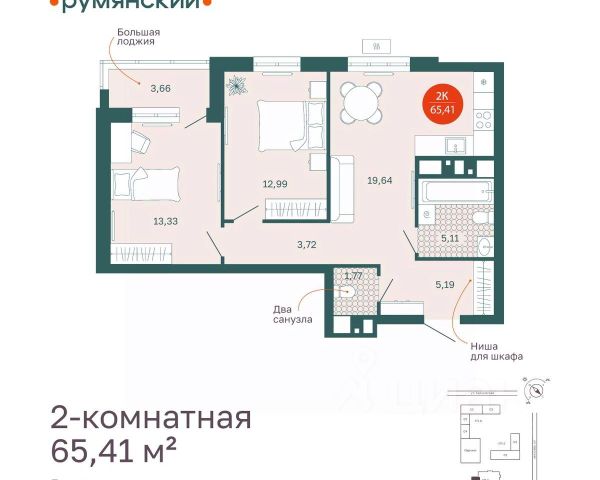 Формат: Просторная евротрешка с удачной планировкой - "распашонка".
