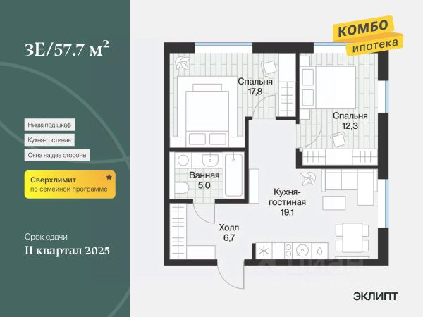 Квартира в счёт первоначального взноса по программе обмена. Квартира с кухней-гостиной и двумя спальнями в Октябрьском на Туре. Особенности планировки: гардеробная, разнесённые спальни, предчистовая отделка, мастер-спальня. квартиры в нашей базе: ОКТ09-Ж4.2.4. Район Проект расположен на берегу реки, в одном из самых живописных и экологичных районов Тюмени. За последние годы облик района изменился. По соседству с индивидуальной застройкой выросли многоквартирные дома. При проектировании "Октябрьского на Туре" нашей приоритетной задачей стало сохранение природного ландшафта: мы постарались деликатно вписать в него современную архитектуру. Квартал удачно расположен с точки зрения дорожной инфраструктуры. На автомобиле путь до центра города составит 15 минут. Добраться до набережной и главных тюменских достопримечательностей можно и на общественном транспорте. В пешей доступности находится автобусная остановка. Проект По мастер-плану здесь будет восемь домов. Ядро застройки составляют замкнутые кварталы переменной этажности. Их высотность понижается по мере приближения к реке. На углах участка мы разместили башни-доминанты. Одной из достопримечательностей квартала станет парк на Туре — здесь появится зеленая зона протяженностью около 6 километров для пеших и велопрогулок. Смысловая ось квартала — широкая главная улица с высаженными вдоль неё высокими деревьями. Они создают тень и работают как шумо- и пылезащитные экраны. Это место сосредоточения основных пешеходных и транспортных потоков, на сторону которых мы ориентировали большинство коммерческих помещений. Отсюда жители могут свернуть на тихие соседские улицы и попасть на внутриквартальную площадь — ещё одну точку притяжения.Квартира в счёт первоначального взноса по программе обмена. #z5O4O5