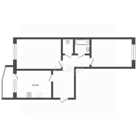 Квартира с кухней-гостиной и двумя спальнями в кварталах "На Минской". Особенности планировки: окна на две стороны, предчистовая отделка, разнесённые спальни.
