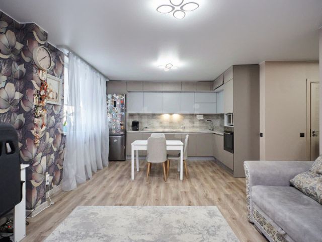 В продаже просторная квартира в современном ЖК, квартира формата 2+, с большой кухней-гостиной площадью 28 м2 и двумя большими спальнями 13,7 и 16,8 м2, функциональная планировка, есть просторная гардеробная и балкон с окнами в пол, два санузла.