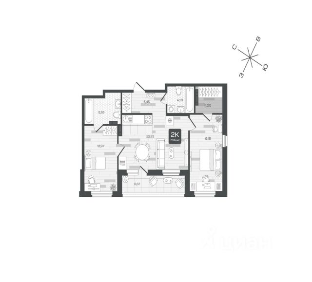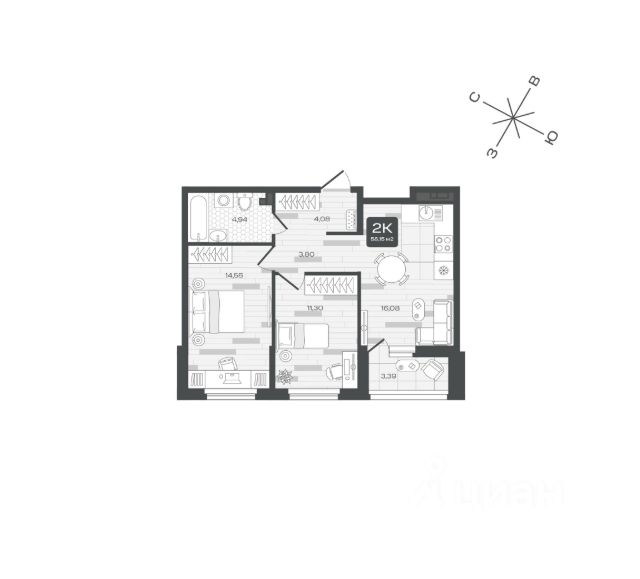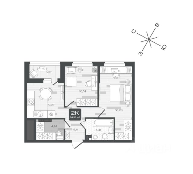 Продаётся квартира площадью 54.58 м2 в жилом комплексе "Дабл-Дабл". Квартира находится на 2 этаже дома, который будет введен в эксплуатацию во 2 квартале 2028 года. Жилая площадь квартиры 26.28 м2, площадь просторной кухни — 10.27 м2. Среди особенностей планировки — изолированные комнаты с окнами на одну сторону, 1 совмещённый санузел. Жилой комплекс "Дабл-Дабл" — это: проект комфорт-класса на Московском тракте дома высотой 15 этажей квартиры от 1-комнатных до 2-уровневых 1 очередь — срок сдачи IV кв. 2025 2 очередь — срок сдачи III кв. 2028 Окружение На границе жилого комплекса — живописный лес. Достаточно открыть окна, чтобы впустить в комнаты ароматы зелени, прохладу и чистый воздух. Благоустройство Юные жители оценят игровые площадки и воркаут-зоны. Любителям неспешных прогулок понравится 2-уровневый променад с панорамным видом и навесами. Лобби Помещения встречают дизайнерскими интерьерами с уютными лаунж-зонами, где удобно подождать курьера или просто сделать паузу перед возвращением домой. Колясочные Возвращайтесь налегке после прогулки с малышом — оставить коляску можно в специальном помещении на первом этаже. Кладовые Благодаря индивидуальным помещениям на техническом этаже сезонные и габаритные вещи будут на своём месте. 2-уровневые квартиры Просторная гостиная и кухня располагаются на первом этаже, спальня и кабинет — на втором. Почувствуйте, как жизнь выходит на новый уровень комфорта и приватности. Панорамное остекление Окна в пол наполняют комнаты светом и стирают границы между домом и природой. Встречайте рассветы или наслаждайтесь огнями вечернего города. Отделка Ровные стены, подготовленные полы и проведённые коммуникации — мы взяли на себя самые грязные и трудоёмкие этапы ремонта. Квартира станет чистым холстом, где легко создать интерьер в любом стиле.