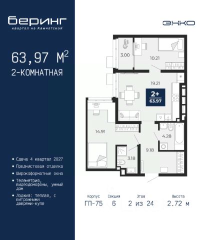 Продаётся квартира площадью 50.32 м2 в жилом комплексе "Смородина". Квартира находится на 2 этаже, жилая площадь квартиры 20.67 м2, площадь просторной кухни — 16.09 м2. Среди особенностей планировки — изолированные комнаты с окнами на одну сторону, 1 совмещённый санузел. Срок сдачи — IV кв. 2026 Жилой комплекс "Смородина" — это: - уютный малоэтажный комплекс в районе ММС - дома высотой 4 этажа - квартиры от студий до семейных вариантов с отапливаемыми лоджиями - экологичные материалы в благоустройстве территории Окружение В 5 минутах ходьбы от проекта — озеро Липовое с песчаным пляжем и лесопарковая зона. Инфраструктура В шаговой доступности есть все для комфортной жизни: школы, детские сады, магазины и аптеки. Рядом с проектом — остановка общественного транспорта. Благоустройство Прямо во дворе — собственные грядки для жителей, где можно выращивать зелень и цветы. Для детей оборудованы детские площадки из натуральных материалов. Лобби Вдохновленные современными тенденциями наши парадные разработаны с акцентом на эстетическую привлекательность и практичность. Использование натуральных материалов и ярких цветовых акцентов создает атмосферу уюта и стиля. Планировки Среди многообразия продуманных планировок есть и уютные студии, и просторные семейные варианты. Во всех квартирах предусмотрены отапливаемые лоджии, где можно устроить зону отдыха или рабочий кабинет. Продается 2-комнатная квартира на 2 этаже в Тюменской области.