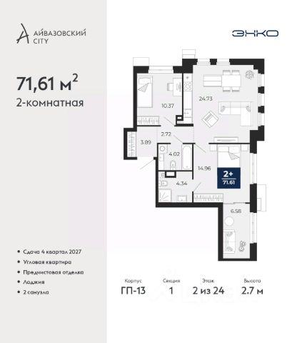 Дом монолитный, двухподъездный, переменной этажности, от 12 до 20 этажей. Квартира находится во 2-й секции высотой 20 этажей в корпусе 214. На этаже 8 квартир. В подъезде 1 пассажирский и 1 грузовой лифт. Окончание строительства - 4 квартал 2027 года. Оформление сделки по договору долевого участия.
