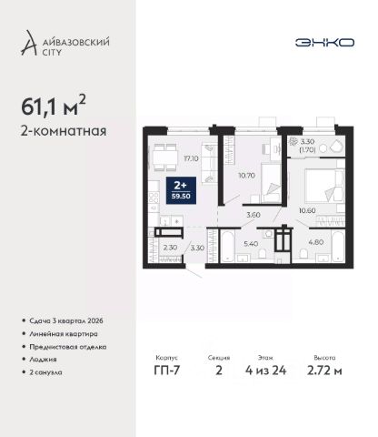 Продаётся квартира площадью 57.48 м2 в жилом комплексе "Смородина". Квартира находится на 4 этаже, жилая площадь квартиры 14.43 м2, площадь просторной кухни — 22.38 м2. Среди особенностей планировки — изолированные комнаты с окнами на одну сторону, 1 совмещённый санузел. Срок сдачи — IV кв. 2026 Жилой комплекс "Смородина" — это: - уютный малоэтажный комплекс в районе ММС - дома высотой 4 этажа - квартиры от студий до семейных вариантов с отапливаемыми лоджиями - экологичные материалы в благоустройстве территории Окружение В 5 минутах ходьбы от проекта — озеро Липовое с песчаным пляжем и лесопарковая зона. Инфраструктура В шаговой доступности есть все для комфортной жизни: школы, детские сады, магазины и аптеки. Рядом с проектом — остановка общественного транспорта. Благоустройство Прямо во дворе — собственные грядки для жителей, где можно выращивать зелень и цветы. Для детей оборудованы детские площадки из натуральных материалов. Лобби Вдохновленные современными тенденциями наши парадные разработаны с акцентом на эстетическую привлекательность и практичность. Использование натуральных материалов и ярких цветовых акцентов создает атмосферу уюта и стиля. Планировки Среди многообразия продуманных планировок есть и уютные студии, и просторные семейные варианты. Во всех квартирах предусмотрены отапливаемые лоджии, где можно устроить зону отдыха или рабочий кабинет.