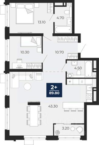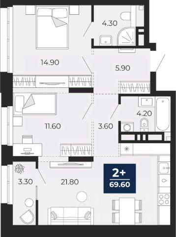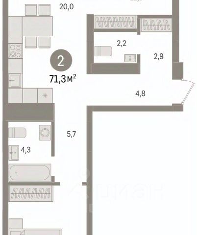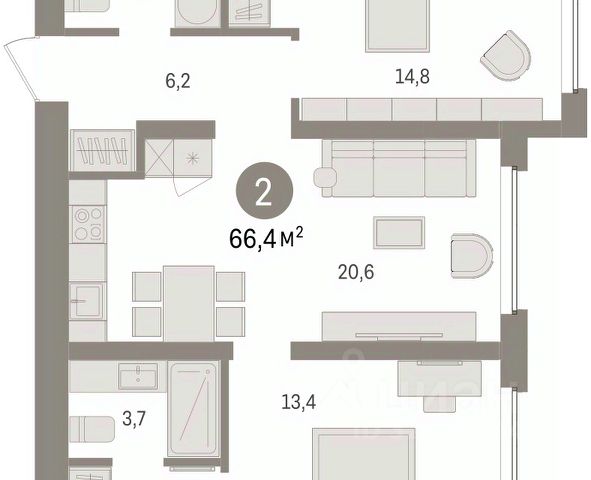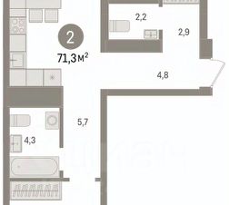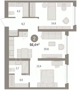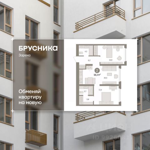 2-комн. квартира от застройщика с предчистовой отделкой в ЖК "Зарека" на 4 этаже. Общая площадь: 69.55 кв.м. Высота потолков 2.7 м. Дом монолитный, многоподъездный, переменной этажности, от 6 до 16 этажей. Квартира находится в 4-й секции высотой 8 этажей в корпусе 5-2. На этаже 6 квартир. В подъезде 1 пассажирский и 1 грузовой лифт. Окончание строительства - 4 квартал 2026 года. Оформление сделки по договору долевого участия. Квартира с кухней-гостиной и двумя спальнями в жилом районе "Зарека". Особенности планировки: балкон, постирочная, предчистовая отделка. квартиры в нашей базе: ЗРК05.2-Ж4.4.6. Проект На планировочную структуру "Зареки" повлияла близость к автомобильному мосту Челюскинцев. Мы расположили жилые здания так, чтобы они постепенно удалялись от проезжей части. Приём напоминает лесенку: чем сильнее мост возвышается над участком застройки, тем дальше по отношению к нему стоят дома. Этот ступенчатый сдвиг позволил нам сформировать буфер между кварталами и оживлённой магистралью. Мы намерены высадить здесь высокие деревья и создать дополнительную защиту от дорожных шума и пыли. В границах нашего участка мы намерены разместить школу и два встроенных детских сада на 135 и 150 мест. Общественные пространства С севера на юг территорию будет пронизывать пешеходный бульвар. Мы мыслим это общественное пространство как главный центр притяжения. На нём будут сосредоточены основные детские игровые и спортивные зоны, места для встреч и спокойного отдыха. Он также сыграет роль мостика, ведущего к другим нашим проектам — "Европейскому кварталу" и "Дому у озера". Одна из базовых идей мастер-плана касается береговой линии. Сегодня озеленение этой территории носит стихииныи характер, а прямому доступу к Туре препятствует дамба. Мы хотим благоустроить пространства у воды и открыть их для людей. Архитекторы спроектировали систему многоярусных троп и спусков к реке, смотровые площадки и места для активного отдыха и пикников. #zmdcac