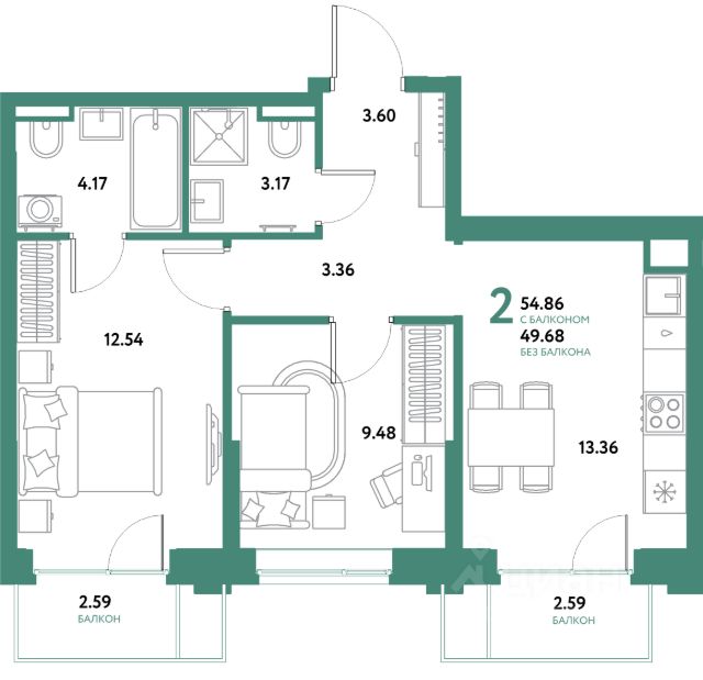 Квартира с кухней-гостиной и двумя спальнями в Октябрьском на Туре. Особенности планировки: балкон, второй санузел, гардеробная, предчистовая отделка, разнесённые спальни. квартиры в нашей базе: ОКТ09-Ж1.4.5. Район Проект расположен на берегу реки, в одном из самых живописных и экологичных районов Тюмени. За последние годы облик района изменился. По соседству с индивидуальной застройкой выросли многоквартирные дома. При проектировании "Октябрьского на Туре" нашей приоритетной задачей стало сохранение природного ландшафта: мы постарались деликатно вписать в него современную архитектуру. Квартал удачно расположен с точки зрения дорожной инфраструктуры. На автомобиле путь до центра города составит 15 минут. Добраться до набережной и главных тюменских достопримечательностей можно и на общественном транспорте. В пешей доступности находится автобусная остановка. Проект По мастер-плану здесь будет восемь домов. Ядро застройки составляют замкнутые кварталы переменной этажности. Их высотность понижается по мере приближения к реке. На углах участка мы разместили башни-доминанты. Одной из достопримечательностей квартала станет парк на Туре — здесь появится зеленая зона протяженностью около 6 километров для пеших и велопрогулок. Смысловая ось квартала — широкая главная улица с высаженными вдоль неё высокими деревьями. Они создают тень и работают как шумо- и пылезащитные экраны. Это место сосредоточения основных пешеходных и транспортных потоков, на сторону которых мы ориентировали большинство коммерческих помещений. Отсюда жители могут свернуть на тихие соседские улицы и попасть на внутриквартальную площадь — ещё одну точку притяжения. #z59BCD