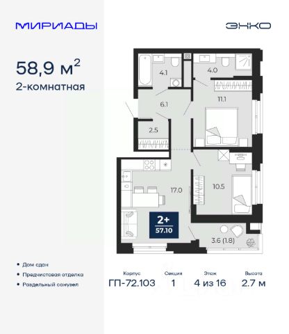 Идентификатор квартиры по базе застройщика: РСП03. #zMaw42