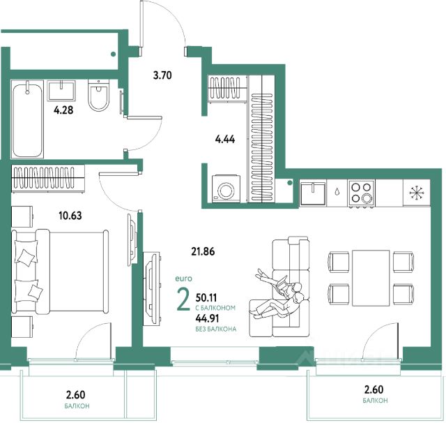 В квартире остается кухонный гарнитур с встроенной бытовой техникой, а также вместительные шкафы в прихожей и спальне.