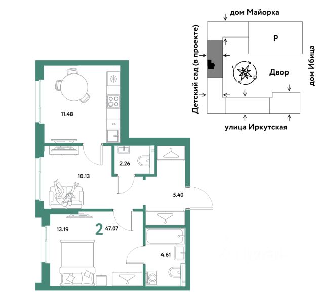 Квартира с кухней-гостиной и двумя спальнями в Октябрьском на Туре. Особенности планировки: балкон, второй санузел, гардеробная, предчистовая отделка. квартиры в нашей базе: ОКТ09-Ж5.5.5. Район Проект расположен на берегу реки, в одном из самых живописных и экологичных районов Тюмени. За последние годы облик района изменился. По соседству с индивидуальной застройкой выросли многоквартирные дома. При проектировании "Октябрьского на Туре" нашей приоритетной задачей стало сохранение природного ландшафта: мы постарались деликатно вписать в него современную архитектуру. Квартал удачно расположен с точки зрения дорожной инфраструктуры. На автомобиле путь до центра города составит 15 минут. Добраться до набережной и главных тюменских достопримечательностей можно и на общественном транспорте. В пешей доступности находится автобусная остановка. Проект По мастер-плану здесь будет восемь домов. Ядро застройки составляют замкнутые кварталы переменной этажности. Их высотность понижается по мере приближения к реке. На углах участка мы разместили башни-доминанты. Одной из достопримечательностей квартала станет парк на Туре — здесь появится зеленая зона протяженностью около 6 километров для пеших и велопрогулок. Смысловая ось квартала — широкая главная улица с высаженными вдоль неё высокими деревьями. Они создают тень и работают как шумо- и пылезащитные экраны. Это место сосредоточения основных пешеходных и транспортных потоков, на сторону которых мы ориентировали большинство коммерческих помещений. Отсюда жители могут свернуть на тихие соседские улицы и попасть на внутриквартальную площадь — ещё одну точку притяжения. #2wDSaW