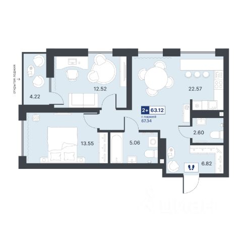 Квартира с кухней-гостиной и двумя спальнями в Октябрьском на Туре. Особенности планировки: балкон, предчистовая отделка. квартиры в нашей базе: ОКТ09-Ж5.5.5. Район Проект расположен на берегу реки, в одном из самых живописных и экологичных районов Тюмени. За последние годы облик района изменился. По соседству с индивидуальной застройкой выросли многоквартирные дома. При проектировании "Октябрьского на Туре" нашей приоритетной задачей стало сохранение природного ландшафта: мы постарались деликатно вписать в него современную архитектуру. Квартал удачно расположен с точки зрения дорожной инфраструктуры. На автомобиле путь до центра города составит 15 минут. Добраться до набережной и главных тюменских достопримечательностей можно и на общественном транспорте. В пешей доступности находится автобусная остановка. Проект По мастер-плану здесь будет восемь домов. Ядро застройки составляют замкнутые кварталы переменной этажности. Их высотность понижается по мере приближения к реке. На углах участка мы разместили башни-доминанты. Одной из достопримечательностей квартала станет парк на Туре — здесь появится зеленая зона протяженностью около 6 километров для пеших и велопрогулок. Смысловая ось квартала — широкая главная улица с высаженными вдоль неё высокими деревьями. Они создают тень и работают как шумо- и пылезащитные экраны. Это место сосредоточения основных пешеходных и транспортных потоков, на сторону которых мы ориентировали большинство коммерческих помещений. Отсюда жители могут свернуть на тихие соседские улицы и попасть на внутриквартальную площадь — ещё одну точку притяжения. #ZWd5aw