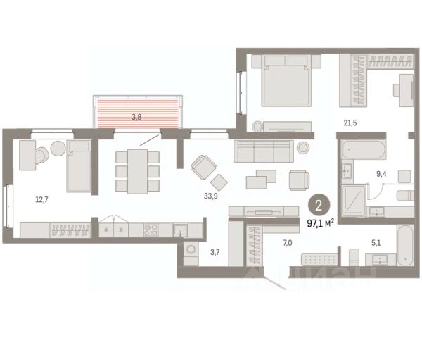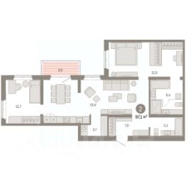 Двухкомнатная квартира с предчистовой отделкой в Кварталы "На Минской" на 5 этаже. Общая площадь: 65.09 кв.м., жилая: 23 кв.м., площадь просторной кухни-гостиной: 21.3 кв.м. Комнаты изолированные, все окна выходят на одну сторону. В квартире одна лоджия, два совмещенных санузла. Высота потолков 2.7 м. Дом монолитный, многоподъездный, переменной этажности, от 7 до 11 этажей. Квартира находится во 2-й секции высотой 7 этажей в корпусе 2. На этаже 7 квартир. В подъезде 1 пассажирский и 1 грузовой лифт. Окончание строительства - 1 квартал 2027 года. Оформление сделки по договору долевого участия. Квартира с кухней-гостиной и двумя спальнями в кварталах "На Минской". Особенности планировки: балкон, вид во двор, гардеробная, мастер-спальня, предчистовая отделка, разнесённые спальни. квартиры в нашей базе: МНС02-Ж2.5.2. В сердце города Кварталы "На Минской" находятся в самом центре. За десять минут можно дойти до площади 400-летия Тюмени и Большого Драматического театра, Тюменского индустриального и медицинского университетов, спортивного комплекса "Строймаш", ТРЦ "Гудвин" и "Премьер", Тюменского технопарка. Поблизости много детских садов, школ и поликлиник. Пространство разного опыта Создавая кварталы "На Минской" мы вдохновлялись Хакскими дворами в Берлине и улицей Давида Агмашенебели в Тбилиси. И первые и вторая — яркие разнообразные пространства, сформированные прогрессивными архитекторами и притягивающие городских интеллектуалов. Престижная недвижимость здесь соседствует с барами, ресторанами, креативными кластерами и бюро, дизайнерскими лавками. Полезные улицы Кварталы "На Минской" свяжет сеть променадов, автомобильных проездов и велодорожек. Уличный фронт проекта мы сформируем с помощью аллейной посадки деревьев. Они создадут тень для ресторанов и кафе на первых этажах, визуально отделят проезжую и пешеходную части, снизят объём пыли и уровень шума. Мы реализуем проект в районе с развитой базовой инфраструктурой. И поэтому тщательно подошли к программированию коммерции, посчитав, что её основная задача — "закрывать" более высокие потребности жителей. Здесь может появиться пекарня с вкусными круассанами, турагентство на случай, если захочется перезимовать в Сочи, массажный кабинет, ресторан, когда надоело есть дома и многое другое. #2SZawI