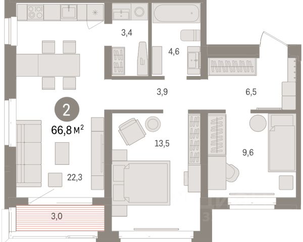 Квартира в счёт первоначального взноса по программе обмена. По всем вопросам обращайтесь в офис продаж, мы вам все подробно расскажем! 2-комн. квартира с предчистовой отделкой в Кварталы "На Минской" на 5 этаже. Общая площадь: 87.57 кв.м., жилая: 25.3 кв.м., площадь просторной кухни-гостиной: 32.8 кв.м. Квартира угловая, идеально подойдет любителям тишины и панорамных видов. В квартире один балкон, два совмещенных санузла. Высота потолков 2.7 м. Дом монолитный, многоподъездный, переменной этажности, от 7 до 16 этажей. Квартира находится в 5-й секции высотой 8 этажей в корпусе 1. На этаже 6 квартир. В подъезде 1 грузовой лифт. Окончание строительства - 4 квартал 2026 года. Оформление сделки по договору долевого участия. Квартира с кухней-гостиной и двумя спальнями в кварталах "На Минской". Особенности планировки: гардеробная, панорамное остекление, предчистовая отделка, мастер-спальня, балкон. квартиры в нашей базе: МНС01-Ж5.5.3. В сердце города Кварталы "На Минской" находятся в самом центре. За десять минут можно дойти до площади 400-летия Тюмени и Большого Драматического театра, Тюменского индустриального и медицинского университетов, спортивного комплекса "Строймаш", ТРЦ "Гудвин" и "Премьер", Тюменского технопарка. Поблизости много детских садов, школ и поликлиник. Пространство разного опыта Создавая кварталы "На Минской" мы вдохновлялись Хакскими дворами в Берлине и улицей Давида Агмашенебели в Тбилиси. И первые и вторая — яркие разнообразные пространства, сформированные прогрессивными архитекторами и притягивающие городских интеллектуалов. Престижная недвижимость здесь соседствует с барами, ресторанами, креативными кластерами и бюро, дизайнерскими лавками. Полезные улицы Кварталы "На Минской" свяжет сеть променадов, автомобильных проездов и велодорожек. Уличный фронт проекта мы сформируем с помощью аллейной посадки деревьев. Они создадут тень для ресторанов и кафе на первых этажах, визуально отделят проезжую и пешеходную части, снизят объём пыли и уровень шума. Мы реализуем проект в районе с развитой базовой инфраструктурой. И поэтому тщательно подошли к программированию коммерции, посчитав, что её основная задача — "закрывать" более высокие потребности жителей. Здесь может появиться пекарня с вкусными круассанами, турагентство на случай, если захочется перезимовать в Сочи, массажный кабинет, ресторан, когда надоело есть дома и многое другое. #Z55cAU