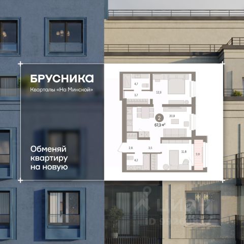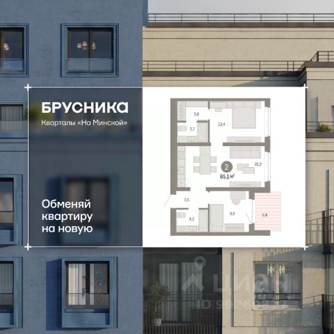 Двухкомнатная квартира с предчистовой отделкой в Кварталы "На Минской" на 5 этаже. Общая площадь: 65.09 кв.м., жилая: 23 кв.м., площадь просторной кухни-гостиной: 21.3 кв.м. Комнаты изолированные, все окна выходят на одну сторону. В квартире одна лоджия, два совмещенных санузла. Высота потолков 2.7 м. Дом монолитный, многоподъездный, переменной этажности, от 7 до 11 этажей. Квартира находится во 2-й секции высотой 7 этажей в корпусе 2. На этаже 7 квартир. В подъезде 1 пассажирский и 1 грузовой лифт. Окончание строительства - 1 квартал 2027 года. Оформление сделки по договору долевого участия. Квартира с кухней-гостиной и двумя спальнями в кварталах "На Минской". Особенности планировки: балкон, вид во двор, гардеробная, мастер-спальня, предчистовая отделка, разнесённые спальни. квартиры в нашей базе: МНС02-Ж2.5.2. В сердце города Кварталы "На Минской" находятся в самом центре. За десять минут можно дойти до площади 400-летия Тюмени и Большого Драматического театра, Тюменского индустриального и медицинского университетов, спортивного комплекса "Строймаш", ТРЦ "Гудвин" и "Премьер", Тюменского технопарка. Поблизости много детских садов, школ и поликлиник. Пространство разного опыта Создавая кварталы "На Минской" мы вдохновлялись Хакскими дворами в Берлине и улицей Давида Агмашенебели в Тбилиси. И первые и вторая — яркие разнообразные пространства, сформированные прогрессивными архитекторами и притягивающие городских интеллектуалов. Престижная недвижимость здесь соседствует с барами, ресторанами, креативными кластерами и бюро, дизайнерскими лавками. Полезные улицы Кварталы "На Минской" свяжет сеть променадов, автомобильных проездов и велодорожек. Уличный фронт проекта мы сформируем с помощью аллейной посадки деревьев. Они создадут тень для ресторанов и кафе на первых этажах, визуально отделят проезжую и пешеходную части, снизят объём пыли и уровень шума. Мы реализуем проект в районе с развитой базовой инфраструктурой. И поэтому тщательно подошли к программированию коммерции, посчитав, что её основная задача — "закрывать" более высокие потребности жителей. Здесь может появиться пекарня с вкусными круассанами, турагентство на случай, если захочется перезимовать в Сочи, массажный кабинет, ресторан, когда надоело есть дома и многое другое. #zsZawI
