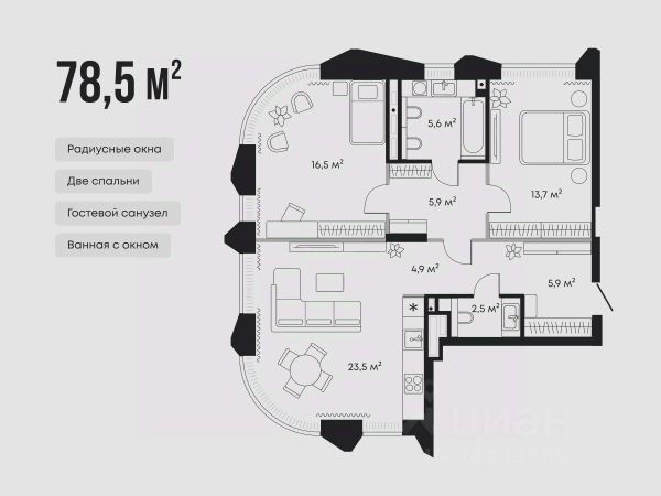 • ✓ В базе Циан 36 2-комнатных квартир на 5 этаже в микрорайоне Исторический в городе Тюмень
