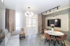 Квартира с кухней-гостиной и двумя спальнями в Октябрьском на Туре. Особенности планировки: вид во двор, лоджия, мастер-спальня, предчистовая отделка, разнесённые спальни. квартиры в нашей базе: ОКТ09-Ж4.5.7. Район Проект расположен на берегу реки, в одном из самых живописных и экологичных районов Тюмени. За последние годы облик района изменился. По соседству с индивидуальной застройкой выросли многоквартирные дома. При проектировании "Октябрьского на Туре" нашей приоритетной задачей стало сохранение природного ландшафта: мы постарались деликатно вписать в него современную архитектуру. Квартал удачно расположен с точки зрения дорожной инфраструктуры. На автомобиле путь до центра города составит 15 минут. Добраться до набережной и главных тюменских достопримечательностей можно и на общественном транспорте. В пешей доступности находится автобусная остановка. Проект По мастер-плану здесь будет восемь домов. Ядро застройки составляют замкнутые кварталы переменной этажности. Их высотность понижается по мере приближения к реке. На углах участка мы разместили башни-доминанты. Одной из достопримечательностей квартала станет парк на Туре — здесь появится зеленая зона протяженностью около 6 километров для пеших и велопрогулок. Смысловая ось квартала — широкая главная улица с высаженными вдоль неё высокими деревьями. Они создают тень и работают как шумо- и пылезащитные экраны. Это место сосредоточения основных пешеходных и транспортных потоков, на сторону которых мы ориентировали большинство коммерческих помещений. Отсюда жители могут свернуть на тихие соседские улицы и попасть на внутриквартальную площадь — ещё одну точку притяжения. #2510z3