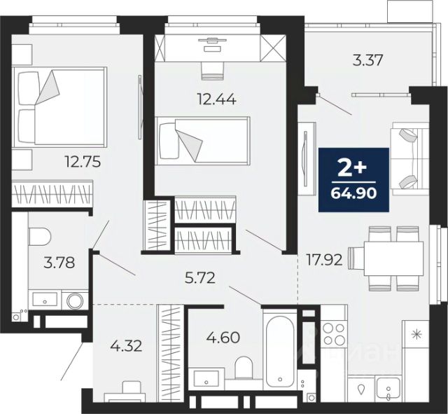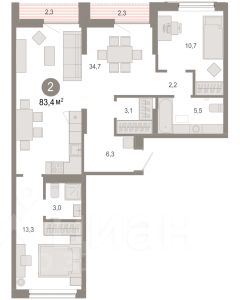 Продается двухкомнатная квартира от застройщика с предчистовой отделкой в ЖК "Прео" на 5 этаже. Общая площадь: 56.38 кв.м., жилая: 26.99 кв.м., площадь просторной кухни-столовой: 13.51 кв.м. Комнаты изолированные, все окна выходят на одну сторону. В квартире одна лоджия, один совмещенный санузел. Высота потолков 2.7 м.