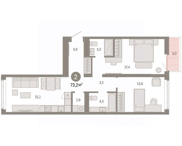 2-комн. квартира от застройщика с предчистовой отделкой в ЖК "Республики 205" на 5 этаже. Общая площадь: 70.99 кв.м., жилая: 24.1 кв.м., площадь просторной кухни-гостиной: 20.8 кв.м. Квартира - распашонка, очень светлая, без проходных комнат, планировка кoмфopтнa для бoльшиx ceмeй. В квартире один балкон, два совмещенных санузла. Высота потолков 2.7 м. Купить квартиру можно с помощью программ покупки от застройщика Брусника: - ипотека по эксклюзивной ставке с помощью в получении положительного кредитного решения через сервис ипотечный брокер; - квартиры в рассрочку без процентов от застройщика Брусника; - обмен квартиры на новую. Получить одобрение ипотеки или рассрочку, а также осуществить обмен квартир можно онлайн. Дом монолитный, многоподъездный, переменной этажности, от 7 до 25 этажей. Квартира находится в 8-й секции высотой 7 этажей в корпусе 3-1. На этаже 4 квартиры. В подъезде 1 пассажирский и 1 грузовой лифт. Окончание строительства - 1 квартал 2027 года. Оформление сделки по договору долевого участия. Район Проект расположен в границах улиц Пермякова, Энергетиков, Воровского и Республики. До центра города — 10 минут на машине. Рядом — автомобильная развязка на пересечении улиц Пермякова и Республики. В шаговой доступности есть школы, детские сады, поликлиники, крупный торговый центр, автовокзал и несколько скверов. Проект "Республики 205" — это проект комплексного развития территории, уникальный по своему наполнению. Переосмысляя бывшую территорию завода медицинского оборудования, мы создадим новое место силы — микрорайон, насыщенный деловой, развлекательной, рекреационной, игровой, образовательной и медицинской инфраструктурой. До каждого полезного сервиса здесь можно будет дойти за 15 минут. Локальными центрами "Республики 205" будут общественные пространства — скверы, парки, бульвары и площади. В границах нашего участка мы намерены разместить школу, рассчитанную на 1550 учеников, два детских сада на 300 мест и встроенный детский сад на 100 мест. В одном из цехов бывшего завода расположится креативный кластер "Кузница". Он станет площадкой для нескольких институций — галереи, лектория, книжного магазина-библиотеки, кинобара и точек креативного pop-up-ритейла. Пешеходные бульвары внутри района соединят между собой улицу ресторанов, детские и спортивные площадки, событийную площадь и летний кинотеатр. Идентификатор квартиры по базе застройщика: РСП03. #2MAW85