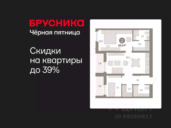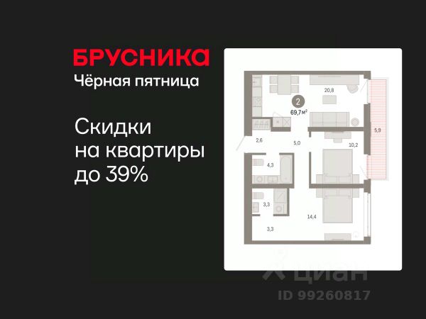 Квартира в рассрочку без процентов от застройщика. Эксклюзивные ипотечные условия. Обмен квартиры на новую. Предложение от застройщика. Дом будет сдан в 4 квартале 2025 года. Квартира в счёт первоначального взноса по программе обмена. Звоните, наши менеджеры вам все расскажут! Просторная двухкомнатная квартира с предчистовой отделкой в ЖК "Республики 205" на 5 этаже. Общая площадь: 70.33 кв.м., жилая: 27 кв.м., площадь просторной кухни-гостиной: 17.1 кв.м. Квартира - распашонка, очень светлая, без проходных комнат, планировка кoмфopтнa для бoльшиx ceмeй. В квартире три балкона, два совмещенных санузла. Высота потолков 2.6 м. Купить квартиру можно с помощью программ покупки от застройщика Брусника: - ипотека по эксклюзивной ставке с помощью в получении положительного кредитного решения через сервис ипотечный брокер; - квартиры в рассрочку без процентов от застройщика Брусника; - обмен квартиры на новую. Получить одобрение ипотеки или рассрочку, а также осуществить обмен квартир можно онлайн. Дом монолитный, многоподъездный, переменной этажности, от 9 до 17 этажей. Квартира находится в 10-й секции высотой 9 этажей в корпусе 1. На этаже 6 квартир. В подъезде 1 грузовой лифт. Начало строительства - 2 квартал 2023 года. Окончание строительства - 4 квартал 2025 года. Оформление сделки по договору долевого участия. Район Проект расположен в границах улиц Пермякова, Энергетиков, Воровского и Республики. До центра города — 10 минут на машине. Рядом — автомобильная развязка на пересечении улиц Пермякова и Республики. В шаговой доступности есть школы, детские сады, поликлиники, крупный торговый центр, автовокзал и несколько скверов. Проект "Республики 205" — это проект комплексного развития территории, уникальный по своему наполнению. Переосмысляя бывшую территорию завода медицинского оборудования, мы создадим новое место силы — микрорайон, насыщенный деловой, развлекательной, рекреационной, игровой, образовательной и медицинской инфраструктурой. До каждого полезного сервиса здесь можно будет дойти за 15 минут. Локальными центрами "Республики 205" будут общественные пространства — скверы, парки, бульвары и площади. В границах нашего участка мы намерены разместить школу, рассчитанную на 1550 учеников, два детских сада на 300 мест и встроенный детский сад на 100 мест. В одном из цехов бывшего завода расположится креативный кластер "Кузница". Он станет площадкой для нескольких институций — галереи, лектория, книжного магазина-библиотеки, кинобара и точек креативного pop-up-ритейла. Пешеходные бульвары внутри района соединят между собой улицу ресторанов, детские и спортивные площадки, событийную площадь и летний кинотеатр. Идентификатор квартиры по базе застройщика: МЕД01-01-10-10. #Z4M976