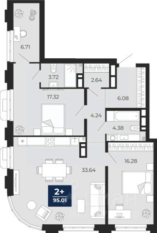 Номер в базе: 9602871 Купить 2-комнатную квартиру на 5 этаже в Тюменской области.