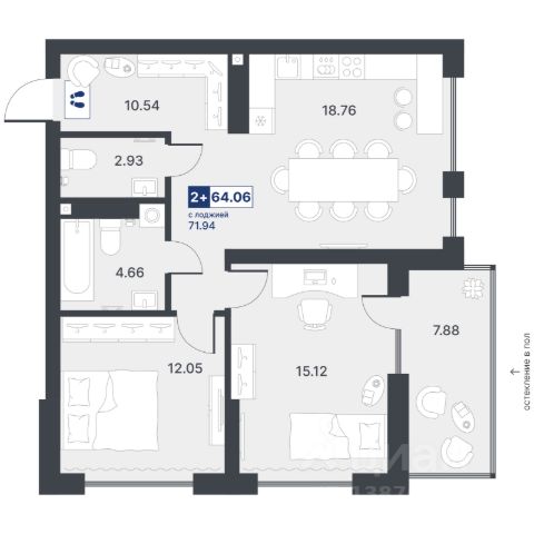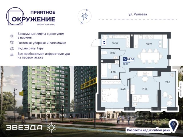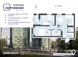 Квартира с кухней-гостиной и двумя спальнями в Октябрьском на Туре. Особенности планировки: вид во двор, гардеробная, лоджия, мастер-спальня, предчистовая отделка, разнесённые спальни. квартиры в нашей базе: ОКТ09-Ж2.6.2. Район Проект расположен на берегу реки, в одном из самых живописных и экологичных районов Тюмени. За последние годы облик района изменился. По соседству с индивидуальной застройкой выросли многоквартирные дома. При проектировании "Октябрьского на Туре" нашей приоритетной задачей стало сохранение природного ландшафта: мы постарались деликатно вписать в него современную архитектуру. Квартал удачно расположен с точки зрения дорожной инфраструктуры. На автомобиле путь до центра города составит 15 минут. Добраться до набережной и главных тюменских достопримечательностей можно и на общественном транспорте. В пешей доступности находится автобусная остановка. Проект По мастер-плану здесь будет восемь домов. Ядро застройки составляют замкнутые кварталы переменной этажности. Их высотность понижается по мере приближения к реке. На углах участка мы разместили башни-доминанты. Одной из достопримечательностей квартала станет парк на Туре — здесь появится зеленая зона протяженностью около 6 километров для пеших и велопрогулок. Смысловая ось квартала — широкая главная улица с высаженными вдоль неё высокими деревьями. Они создают тень и работают как шумо- и пылезащитные экраны. Это место сосредоточения основных пешеходных и транспортных потоков, на сторону которых мы ориентировали большинство коммерческих помещений. Отсюда жители могут свернуть на тихие соседские улицы и попасть на внутриквартальную площадь — ещё одну точку притяжения. #ZmSBv7