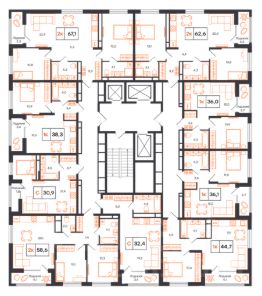 Квартира с кухней-гостиной и двумя спальнями в Октябрьском на Туре. Особенности планировки: вид во двор, лоджия, мастер-спальня, предчистовая отделка, разнесённые спальни. квартиры в нашей базе: ОКТ-08-1-1.6.2. Район Проект расположен на берегу реки, в одном из самых живописных и экологичных районов Тюмени. За последние годы облик района изменился. По соседству с индивидуальной застройкой выросли многоквартирные дома. При проектировании "Октябрьского на Туре" нашей приоритетной задачей стало сохранение природного ландшафта: мы постарались деликатно вписать в него современную архитектуру. Квартал удачно расположен с точки зрения дорожной инфраструктуры. На автомобиле путь до центра города составит 15 минут. Добраться до набережной и главных тюменских достопримечательностей можно и на общественном транспорте. В пешей доступности находится автобусная остановка. Проект По мастер-плану здесь будет восемь домов. Ядро застройки составляют замкнутые кварталы переменной этажности. Их высотность понижается по мере приближения к реке. На углах участка мы разместили башни-доминанты. Одной из достопримечательностей квартала станет парк на Туре — здесь появится зеленая зона протяженностью около 6 километров для пеших и велопрогулок. Смысловая ось квартала — широкая главная улица с высаженными вдоль неё высокими деревьями. Они создают тень и работают как шумо- и пылезащитные экраны. Это место сосредоточения основных пешеходных и транспортных потоков, на сторону которых мы ориентировали большинство коммерческих помещений. Отсюда жители могут свернуть на тихие соседские улицы и попасть на внутриквартальную площадь — ещё одну точку притяжения. #z2DUge