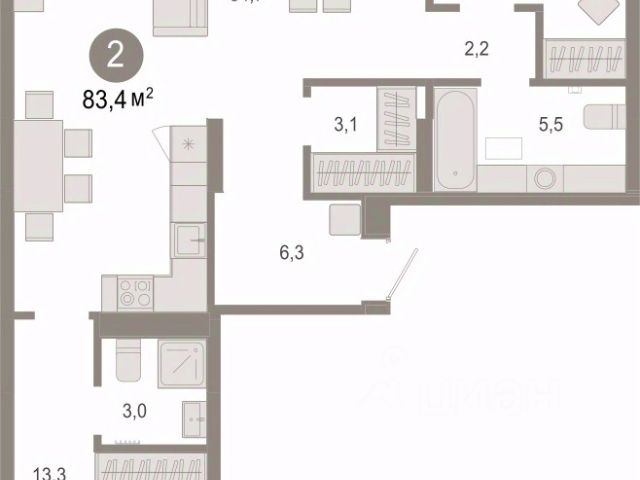 Квартира с кухней-гостиной и двумя спальнями в Октябрьском на Туре. Особенности планировки: вид во двор, гардеробная, лоджия, мастер-спальня, предчистовая отделка, разнесённые спальни. квартиры в нашей базе: ОКТ09-Ж2.6.2. Район Проект расположен на берегу реки, в одном из самых живописных и экологичных районов Тюмени. За последние годы облик района изменился. По соседству с индивидуальной застройкой выросли многоквартирные дома. При проектировании "Октябрьского на Туре" нашей приоритетной задачей стало сохранение природного ландшафта: мы постарались деликатно вписать в него современную архитектуру. Квартал удачно расположен с точки зрения дорожной инфраструктуры. На автомобиле путь до центра города составит 15 минут. Добраться до набережной и главных тюменских достопримечательностей можно и на общественном транспорте. В пешей доступности находится автобусная остановка. Проект По мастер-плану здесь будет восемь домов. Ядро застройки составляют замкнутые кварталы переменной этажности. Их высотность понижается по мере приближения к реке. На углах участка мы разместили башни-доминанты. Одной из достопримечательностей квартала станет парк на Туре — здесь появится зеленая зона протяженностью около 6 километров для пеших и велопрогулок. Смысловая ось квартала — широкая главная улица с высаженными вдоль неё высокими деревьями. Они создают тень и работают как шумо- и пылезащитные экраны. Это место сосредоточения основных пешеходных и транспортных потоков, на сторону которых мы ориентировали большинство коммерческих помещений. Отсюда жители могут свернуть на тихие соседские улицы и попасть на внутриквартальную площадь — ещё одну точку притяжения. #Zm5BV7
