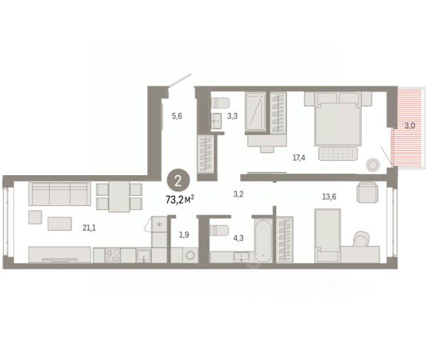 2-комн. квартира от застройщика с предчистовой отделкой в ЖК "Республики 205" на 6 этаже. Общая площадь: 73.24 кв.м. Высота потолков 2.7 м. Купить квартиру можно с помощью программ покупки от застройщика Брусника: - ипотека по эксклюзивной ставке с помощью в получении положительного кредитного решения через сервис ипотечный брокер; - квартиры в рассрочку без процентов от застройщика Брусника; - обмен квартиры на новую. Получить одобрение ипотеки или рассрочку, а также осуществить обмен квартир можно онлайн. Дом монолитный, многоподъездный, переменной этажности, от 7 до 25 этажей. Квартира находится в 3-й секции высотой 9 этажей в корпусе 3-1. На этаже 6 квартир. В подъезде 1 пассажирский и 1 грузовой лифт. Окончание строительства - 1 квартал 2027 года. Оформление сделки по договору долевого участия. Район Проект расположен в границах улиц Пермякова, Энергетиков, Воровского и Республики. До центра города — 10 минут на машине. Рядом — автомобильная развязка на пересечении улиц Пермякова и Республики. В шаговой доступности есть школы, детские сады, поликлиники, крупный торговый центр, автовокзал и несколько скверов. Проект "Республики 205" — это проект комплексного развития территории, уникальный по своему наполнению. Переосмысляя бывшую территорию завода медицинского оборудования, мы создадим новое место силы — микрорайон, насыщенный деловой, развлекательной, рекреационной, игровой, образовательной и медицинской инфраструктурой. До каждого полезного сервиса здесь можно будет дойти за 15 минут. Локальными центрами "Республики 205" будут общественные пространства — скверы, парки, бульвары и площади. В границах нашего участка мы намерены разместить школу, рассчитанную на 1550 учеников, два детских сада на 300 мест и встроенный детский сад на 100 мест. В одном из цехов бывшего завода расположится креативный кластер "Кузница". Он станет площадкой для нескольких институций — галереи, лектория, книжного магазина-библиотеки, кинобара и точек креативного pop-up-ритейла. Пешеходные бульвары внутри района соединят между собой улицу ресторанов, детские и спортивные площадки, событийную площадь и летний кинотеатр. Идентификатор квартиры по базе застройщика: РСП03. #z6A4U8