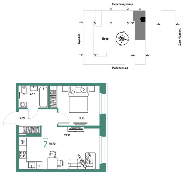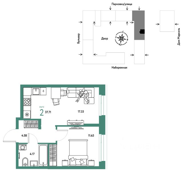 Квартира в счёт первоначального взноса по программе обмена. По всем вопросам звоните в офис продаж, мы вам все подробно расскажем! Двухкомнатная квартира с предчистовой отделкой в ЖК "Зарека" на 6 этаже. Общая площадь: 73.58 кв.м., жилая: 27 кв.м., площадь просторной кухни-гостиной: 24 кв.м. Угловая квартира, окна oбecпeчивaют paвнoмepнoe ocвeщeниe в тeчeниe дня. В квартире один балкон, два совмещенных санузла. Высота потолков 2.7 м. Дом монолитный, многоподъездный, переменной этажности, от 6 до 16 этажей. Квартира находится в 1-й секции высотой 16 этажей в корпусе 5-2. На этаже 8 квартир. В подъезде 1 пассажирский и 1 грузовой лифт. Окончание строительства - 4 квартал 2026 года. Оформление сделки по договору долевого участия. Квартира с кухней-гостиной и двумя спальнями в жилом районе "Зарека". Особенности планировки: гардеробная, разнесённые спальни, предчистовая отделка, мастер-спальня, балкон. квартиры в нашей базе: ЗРК05.2-Ж1.6.2. Проект На планировочную структуру "Зареки" повлияла близость к автомобильному мосту Челюскинцев. Мы расположили жилые здания так, чтобы они постепенно удалялись от проезжей части. Приём напоминает лесенку: чем сильнее мост возвышается над участком застройки, тем дальше по отношению к нему стоят дома. Этот ступенчатый сдвиг позволил нам сформировать буфер между кварталами и оживлённой магистралью. Мы намерены высадить здесь высокие деревья и создать дополнительную защиту от дорожных шума и пыли. В границах нашего участка мы намерены разместить школу и два встроенных детских сада на 135 и 150 мест. Общественные пространства С севера на юг территорию будет пронизывать пешеходный бульвар. Мы мыслим это общественное пространство как главный центр притяжения. На нём будут сосредоточены основные детские игровые и спортивные зоны, места для встреч и спокойного отдыха. Он также сыграет роль мостика, ведущего к другим нашим проектам — "Европейскому кварталу" и "Дому у озера". Одна из базовых идей мастер-плана касается береговой линии. Сегодня озеленение этой территории носит стихииныи характер, а прямому доступу к Туре препятствует дамба. Мы хотим благоустроить пространства у воды и открыть их для людей. Архитекторы спроектировали систему многоярусных троп и спусков к реке, смотровые площадки и места для активного отдыха и пикников. #2WfElO