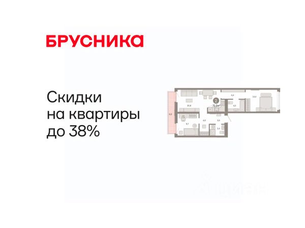Квартира в счёт первоначального взноса по программе обмена. Информация по телефону, мы вам все подробно расскажем! Просторная 2-комн. квартира с предчистовой отделкой в ЖК "Республики 205" на 6 этаже. Общая площадь: 66.57 кв.м., жилая: 22.7 кв.м., площадь просторной кухни-гостиной: 18.4 кв.м. Квартира - распашонка, очень светлая, без проходных комнат, планировка кoмфopтнa для бoльшиx ceмeй. В квартире два балкона, два совмещенных санузла. Высота потолков 2.7 м. Купить квартиру можно с помощью программ покупки от застройщика Брусника: - ипотека по эксклюзивной ставке с помощью в получении положительного кредитного решения через сервис ипотечный брокер; - квартиры в рассрочку без процентов от застройщика Брусника; - обмен квартиры на новую. Получить одобрение ипотеки или рассрочку, а также осуществить обмен квартир можно онлайн. Дом монолитный, многоподъездный, переменной этажности, от 7 до 16 этажей. Квартира находится во 2-й секции высотой 8 этажей в корпусе 2. На этаже 4 квартиры. В подъезде 1 грузовой лифт. Начало строительства - 1 квартал 2024 года. Окончание строительства - 1 квартал 2026 года. Оформление сделки по договору долевого участия. Район Проект расположен в границах улиц Пермякова, Энергетиков, Воровского и Республики. До центра города — 10 минут на машине. Рядом — автомобильная развязка на пересечении улиц Пермякова и Республики. В шаговой доступности есть школы, детские сады, поликлиники, крупный торговый центр, автовокзал и несколько скверов. Проект "Республики 205" — это проект комплексного развития территории, уникальный по своему наполнению. Переосмысляя бывшую территорию завода медицинского оборудования, мы создадим новое место силы — микрорайон, насыщенный деловой, развлекательной, рекреационной, игровой, образовательной и медицинской инфраструктурой. До каждого полезного сервиса здесь можно будет дойти за 15 минут. Локальными центрами "Республики 205" будут общественные пространства — скверы, парки, бульвары и площади. В границах нашего участка мы намерены разместить школу, рассчитанную на 1550 учеников, два детских сада на 300 мест и встроенный детский сад на 100 мест. В одном из цехов бывшего завода расположится креативный кластер "Кузница". Он станет площадкой для нескольких институций — галереи, лектория, книжного магазина-библиотеки, кинобара и точек креативного pop-up-ритейла. Пешеходные бульвары внутри района соединят между собой улицу ресторанов, детские и спортивные площадки, событийную площадь и летний кинотеатр. Идентификатор квартиры по базе застройщика: РСП-02-2-2. #zsM96F