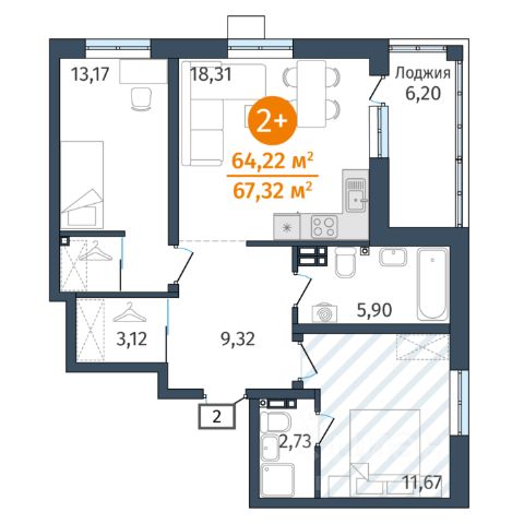 Продаётся квартира площадью 67.30 м2 в жилом комплексе "Дабл-Дабл". Квартира находится на 6 этаже, жилая площадь квартиры 26.80 м2, площадь просторной кухни — 16.90 м2. Среди особенностей планировки — изолированные комнаты с окнами на одну сторону, 1 совмещённый санузел. Срок сдачи — II кв. 2028 Жилой комплекс "Дабл-Дабл" — это: - проект комфорт-класса на Московском тракте - дома высотой 15 этажей - квартиры от 1-комнатных до 2-уровневых Окружение На границе жилого комплекса — живописный лес. Достаточно открыть окна, чтобы впустить в комнаты ароматы зелени, прохладу и чистый воздух. Благоустройство Юные жители оценят игровые площадки и воркаут-зоны. Любителям неспешных прогулок понравится 2-уровневый променад с панорамным видом и навесами. Лобби Помещения встречают дизайнерскими интерьерами с уютными лаунж-зонами, где удобно подождать курьера или просто сделать паузу перед возвращением домой. Колясочные Возвращайтесь налегке после прогулки с малышом — оставить коляску можно в специальном помещении на первом этаже. Кладовые Благодаря индивидуальным помещениям на техническом этаже сезонные и габаритные вещи будут на своём месте. 2-уровневые квартиры Просторная гостиная и кухня располагаются на первом этаже, спальня и кабинет — на втором. Почувствуйте, как жизнь выходит на новый уровень комфорта и приватности. Панорамное остекление Окна в пол наполняют комнаты светом и стирают границы между домом и природой. Встречайте рассветы или наслаждайтесь огнями вечернего города. Отделка Ровные стены, подготовленные полы и проведённые коммуникации — мы взяли на себя самые грязные и трудоёмкие этапы ремонта. Квартира станет чистым холстом, где легко создать интерьер в любом стиле.