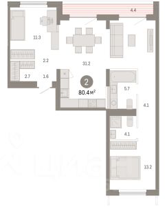 Квартира с кухней-гостиной и двумя спальнями в Октябрьском на Туре. Особенности планировки: балкон, вид во двор, гардеробная, предчистовая отделка, разнесённые спальни. квартиры в нашей базе: ОКТ-10-3-3.7.6. Район Проект расположен на берегу реки, в одном из самых живописных и экологичных районов Тюмени. За последние годы облик района изменился. По соседству с индивидуальной застройкой выросли многоквартирные дома. При проектировании "Октябрьского на Туре" нашей приоритетной задачей стало сохранение природного ландшафта: мы постарались деликатно вписать в него современную архитектуру. Квартал удачно расположен с точки зрения дорожной инфраструктуры. На автомобиле путь до центра города составит 15 минут. Добраться до набережной и главных тюменских достопримечательностей можно и на общественном транспорте. В пешей доступности находится автобусная остановка. Проект По мастер-плану здесь будет восемь домов. Ядро застройки составляют замкнутые кварталы переменной этажности. Их высотность понижается по мере приближения к реке. На углах участка мы разместили башни-доминанты. Одной из достопримечательностей квартала станет парк на Туре — здесь появится зеленая зона протяженностью около 6 километров для пеших и велопрогулок. Смысловая ось квартала — широкая главная улица с высаженными вдоль неё высокими деревьями. Они создают тень и работают как шумо- и пылезащитные экраны. Это место сосредоточения основных пешеходных и транспортных потоков, на сторону которых мы ориентировали большинство коммерческих помещений. Отсюда жители могут свернуть на тихие соседские улицы и попасть на внутриквартальную площадь — ещё одну точку притяжения. #2Mmz4Z