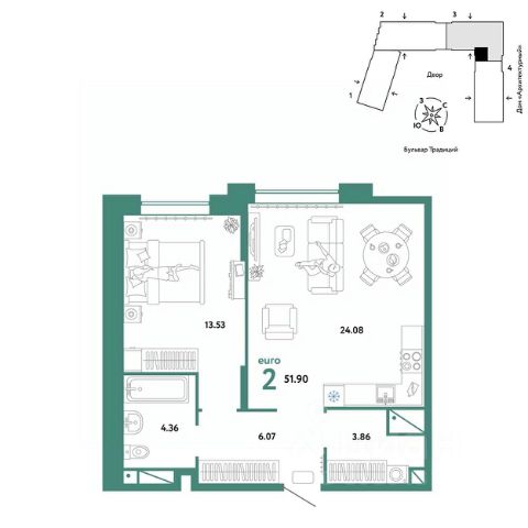 Дом монолитный, двухподъездный, переменной этажности, от 12 до 20 этажей. Квартира находится во 2-й секции высотой 20 этажей в корпусе 214. На этаже 8 квартир. В подъезде 1 пассажирский и 1 грузовой лифт. Окончание строительства - 4 квартал 2027 года. Оформление сделки по договору долевого участия.